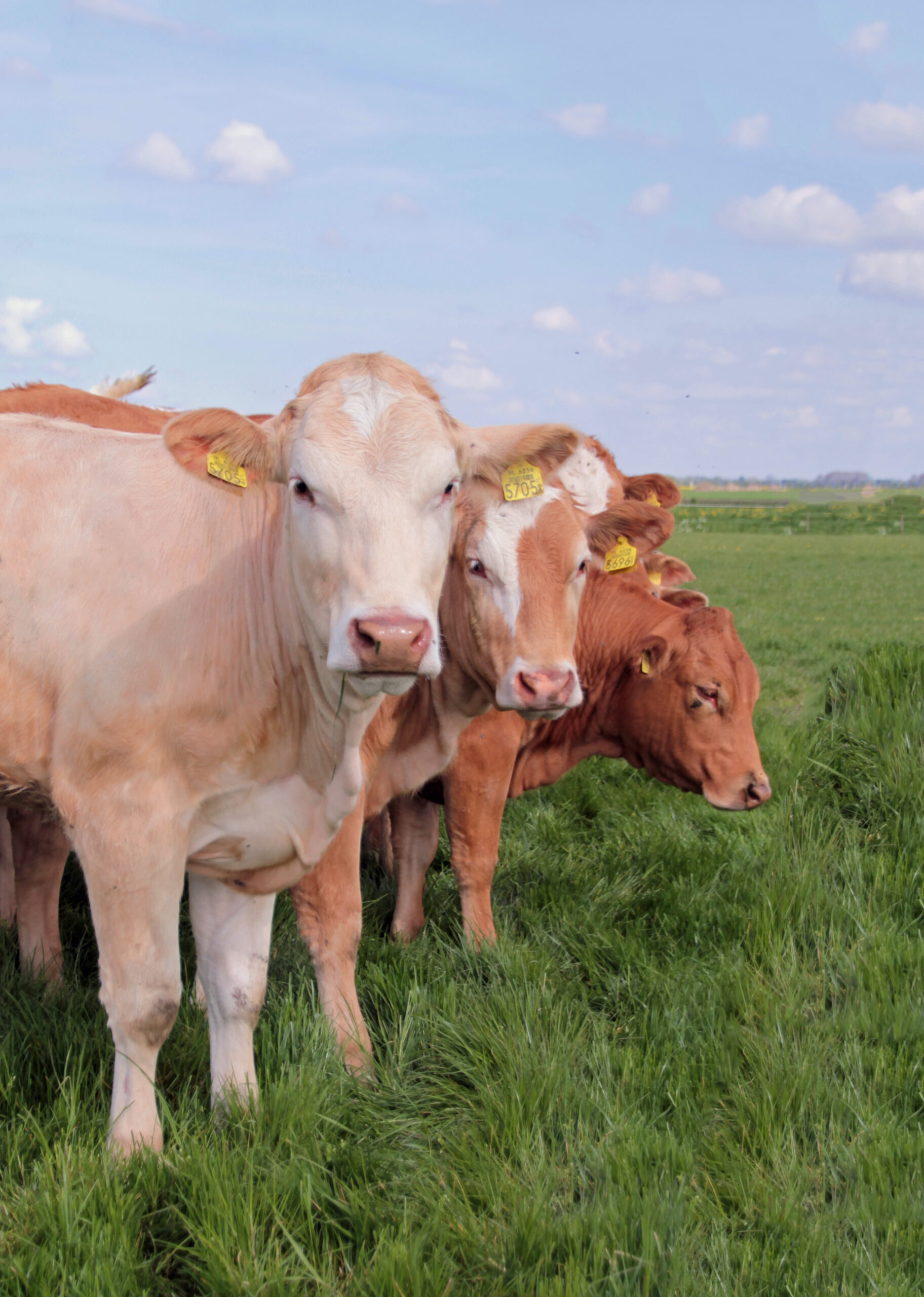 Al het vlees dat wij aan huis verkopen is afkomstig van runderen uit ons bedrijf. De zogeheten zoogkoeien krijgen ieder jaar een kalfje en soms kopen wij er kalfjes bij uit de buurt. Deze kalfjes komen bij ons onder de zoogkoe. Koeien produceren soms namelijk meer melk dan één kalfje op kan; en met z’n tweeën is het natuurlijk nog veel leuker in de wei.